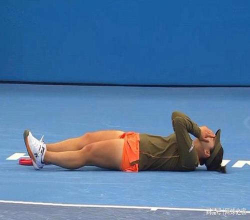 最后来猜一猜认一认。下面这张图片是一位球员获胜之后倒地庆祝。不作提示,您能认出她是谁吗?