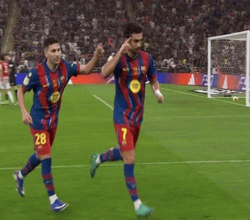 巴萨迅速发难,屡屡通过边路的渗透发动进攻,或是起高球,或是走地面攻入禁区,接连制造威胁,节奏是尽在掌控范围,连续的压迫没等太长时间,费尔明射门弹地却成助攻,费兰半转身抽射破门(1-0),这次配合真是“无心插柳柳成荫”。
